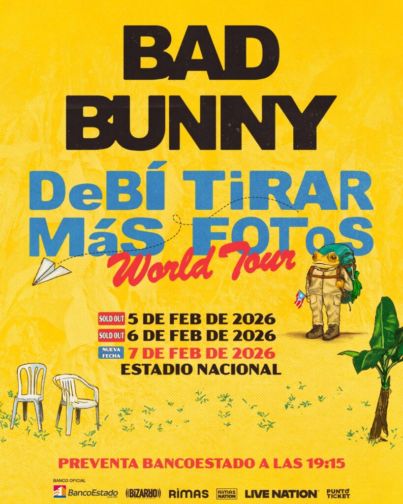 La venta de boletos para disfrutar del tercer show de Bad Bunny en Chile el 7 de febrero en el Estadio Nacional está disponible desde hoy Lunes 12 de mayo desde las 19.15 horas hasta el  miércoles 14 de mayo a las 9.59 am o hasta agotar stock. (Pagando con cuenta Rut o cualquier tarjeta BancoEstado) a través del sistema Puntoticket.
