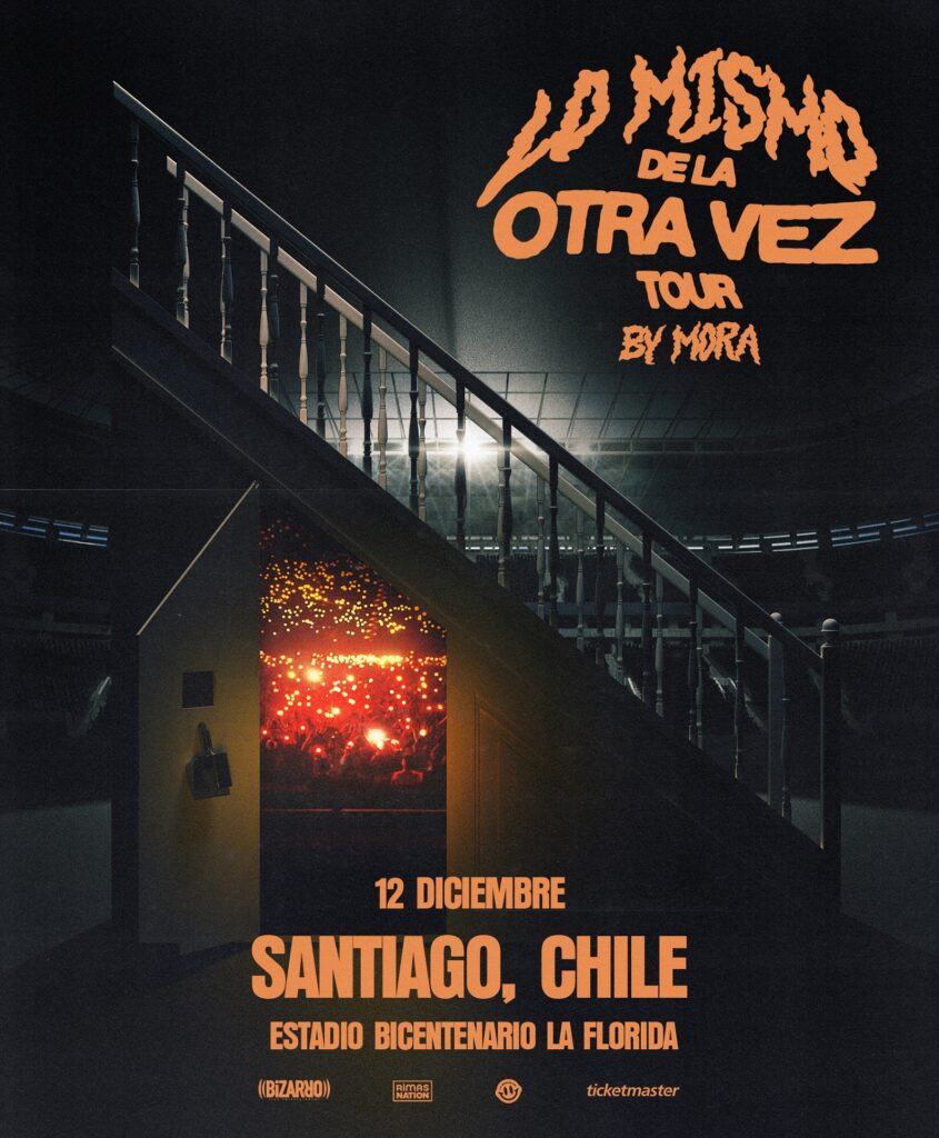 El productor y gran figura de la música urbana Mora, anunció oficialmente su presencia en Chile para el 12 de diciembre en el Estadio Bicentenario de La Florida. La visita del puertorriqueño se enmarca en su última gira denominada “Lo Mismo de la Otra vez Tour” y donde Chile fue incluido en una vuelta que incluye además de Latinoamérica, España y Estados Unidos.
