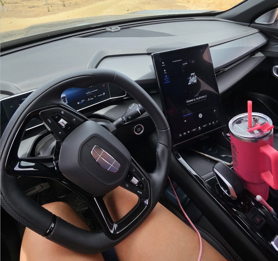 El tablero es digital, pero la estrella es la pantalla vertical de 13,2”. Desde ahí controlas todo: el sunroof panorámico (clave para ver las estrellas en el campo), el climatizador y hasta los asientos eléctricos con memoria.